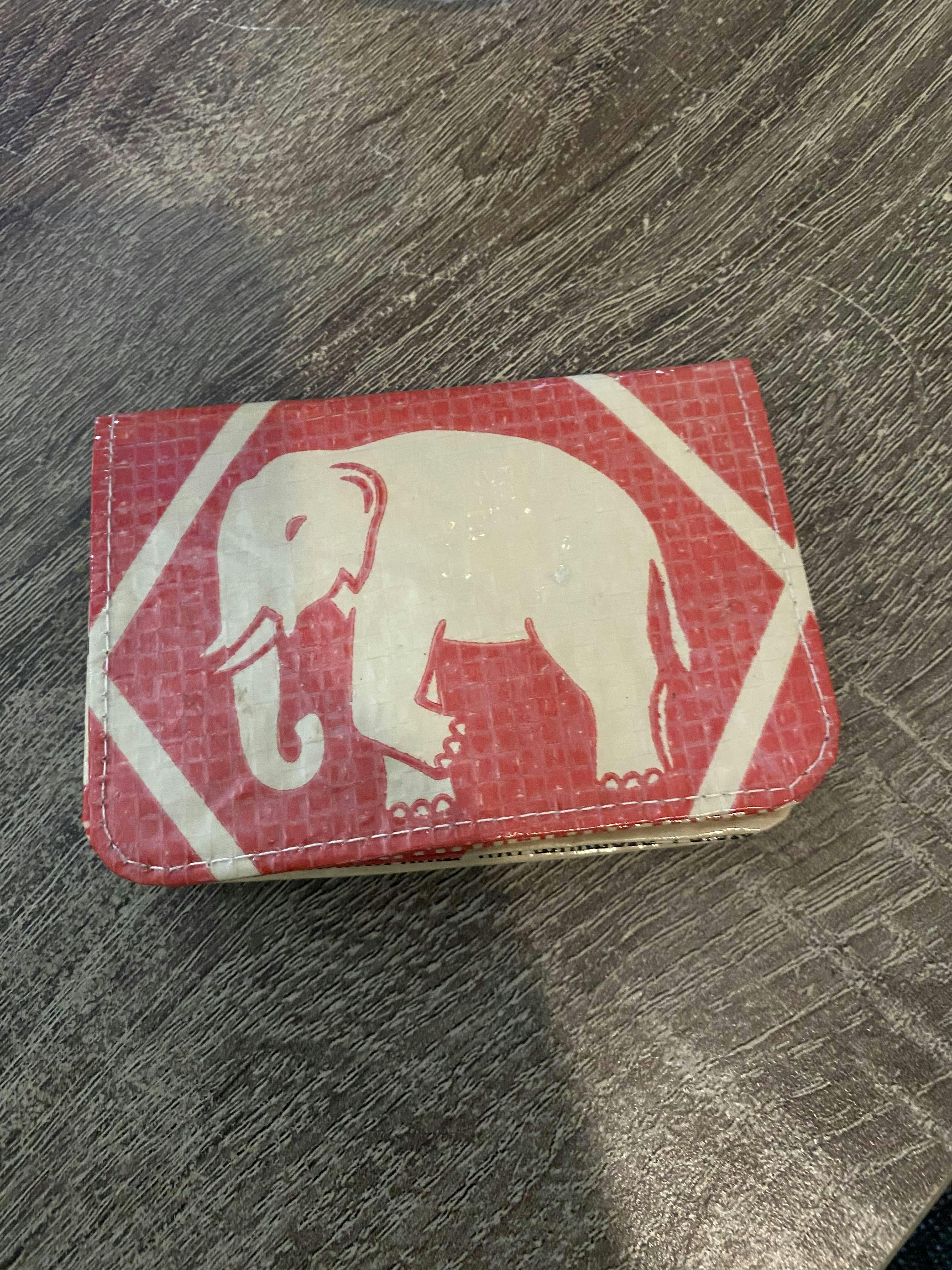 This wallet is not only socially conscious, but environmentally friendly to boot! Made from recycled Thai cement bags. Perfect as a business card holder or small wallet.